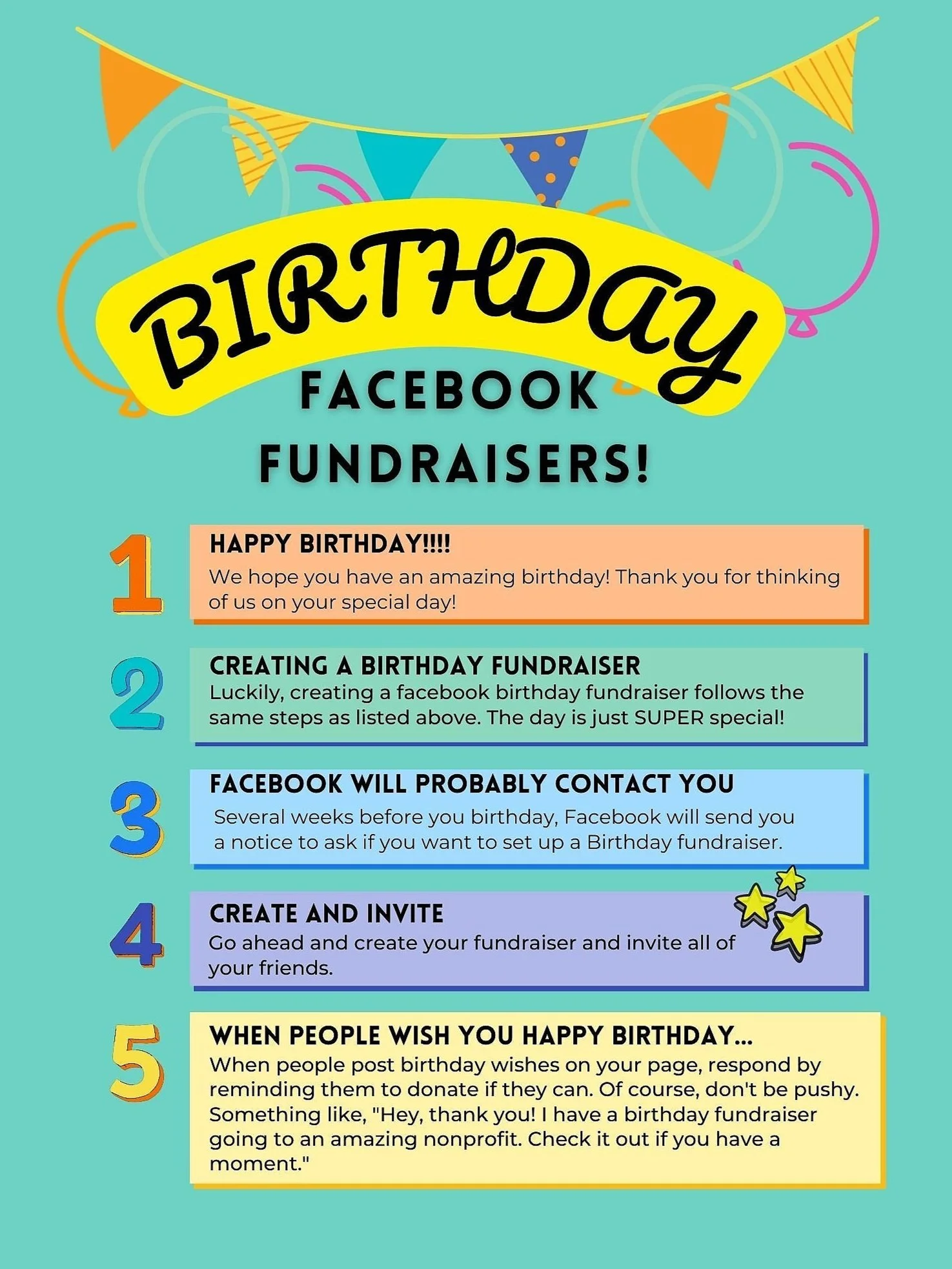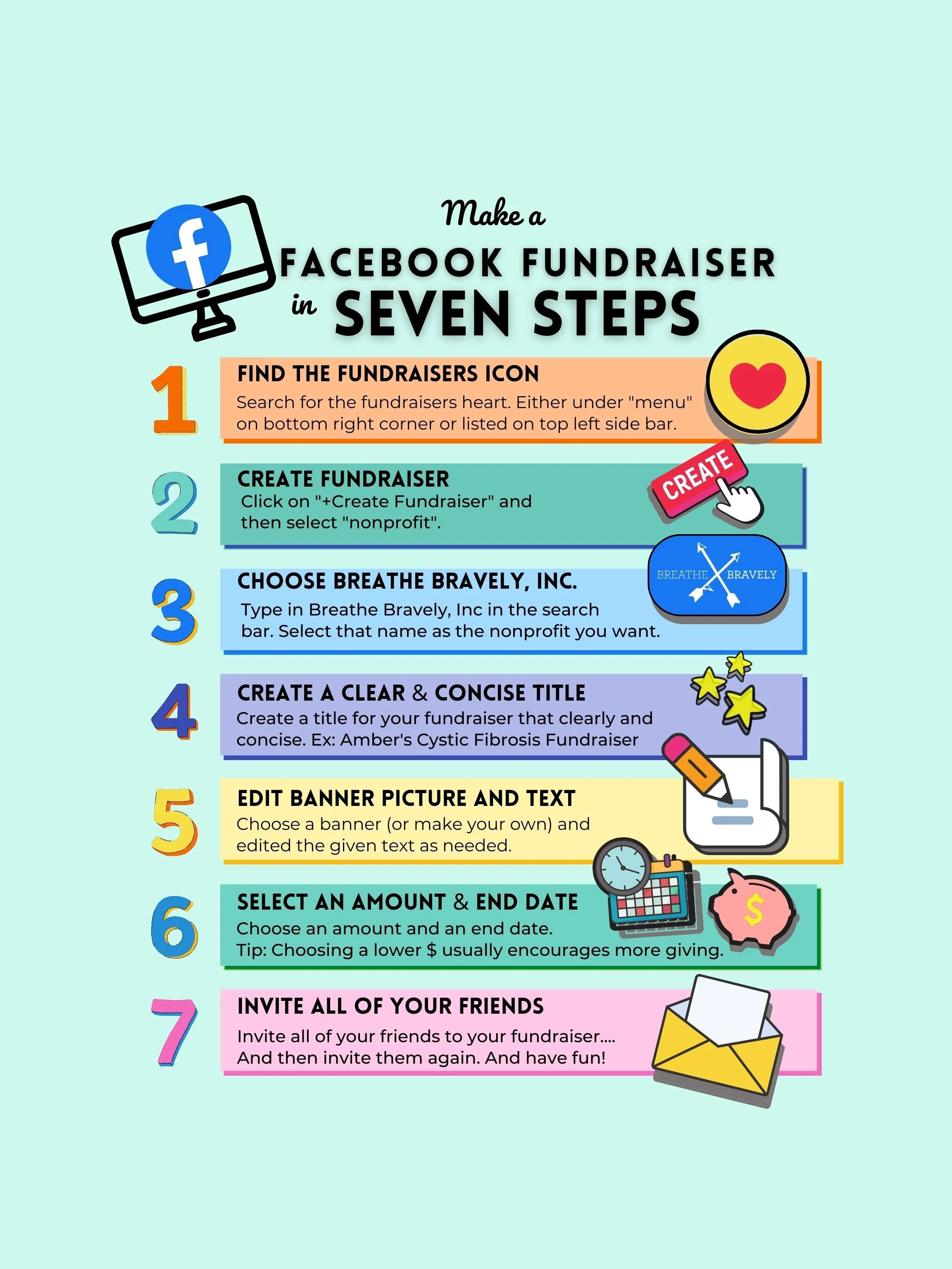 Below are instructions on creating a Facebook Fundraiser and a BIRTHDAY Facebook Fundraiser. We also have Tips and Tricks and Downloadable contact to help make your fundraiser the best it can be.