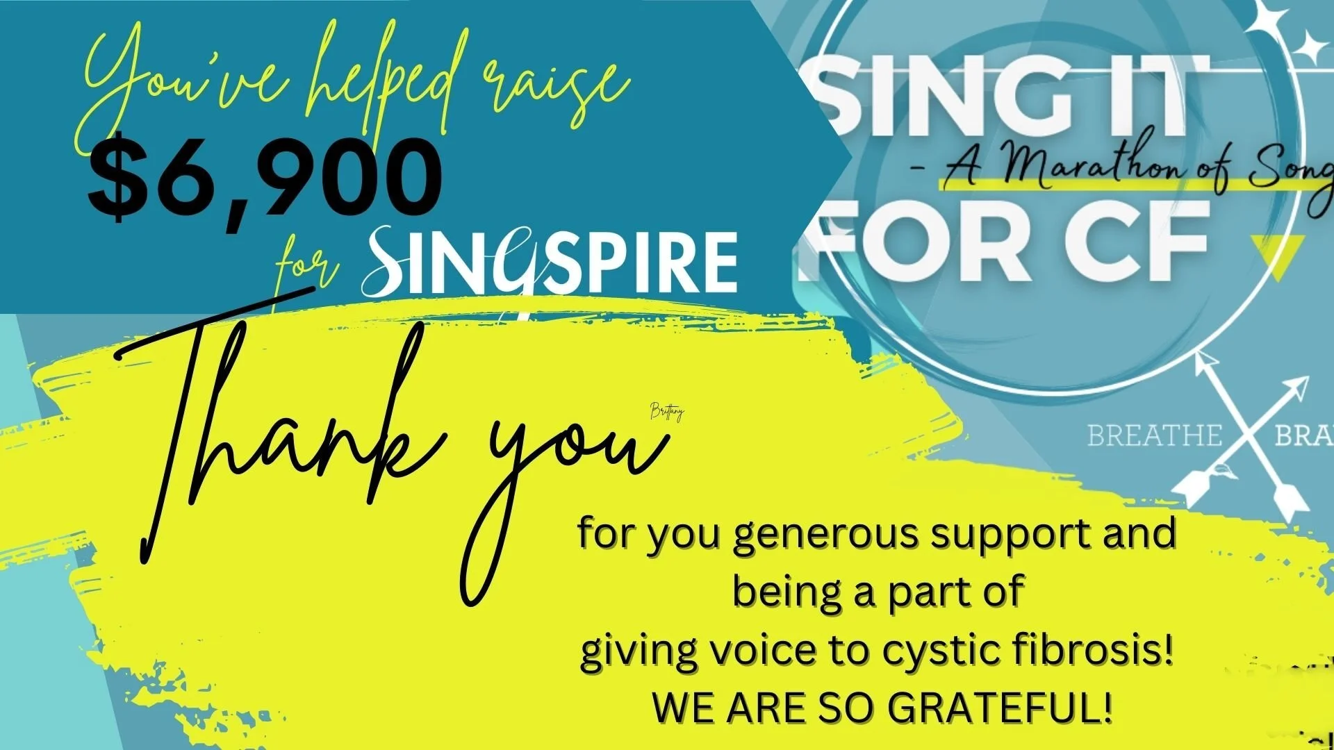 Our 3rd annual "Sing it for CF: A Marathon of Song" left our hearts bursting with pride and our heads filled with so many beautiful songs and stories- including the premier performance of our sINgSPIRE choir using the breakthrough JackTrip technology and TWO break-out concerts by fellow CF community members. Thank you to ALL of the amazing individuals that made today so incredibly unforgettable! Together we were able to raise $6,900.00! And we are truly unable to find the words that match the depth of our gratitude. Gratitude for the participants that gave life and power to the day as well as each of you who supported in so many ways.