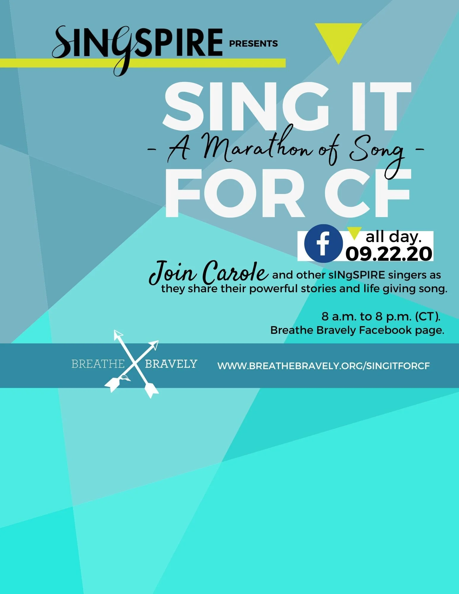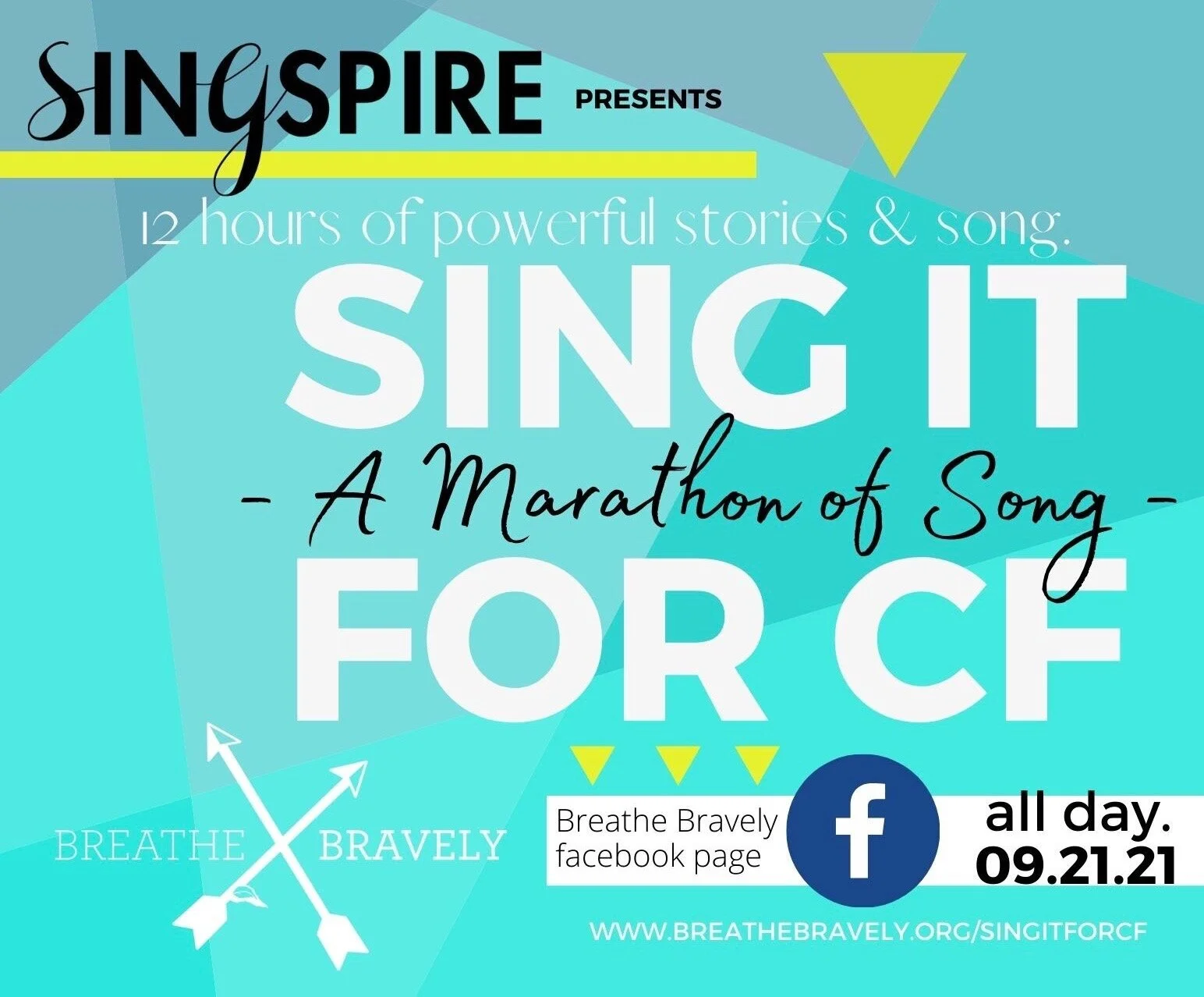 we Are so excited to Host our third annual, “Sing it for CF: A Marathon of Song”! Join us as we shed light on our sINgSPIRE singers, their stories, and the life-giving power of song in the life of Cystic Fibrosis.