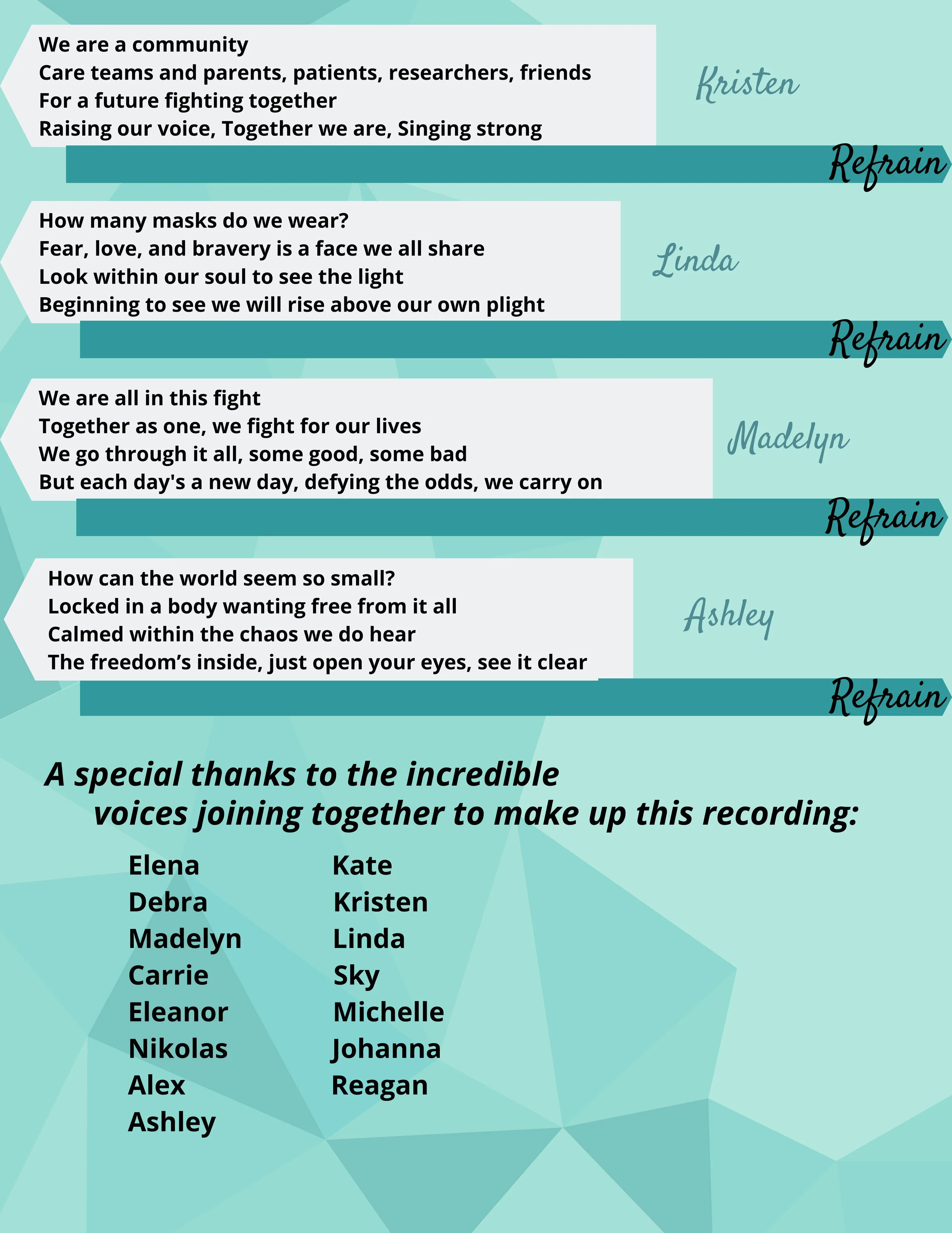 Thanks to everyone who came together every Saturday to share their voices and give voice to cystic fibrosis.